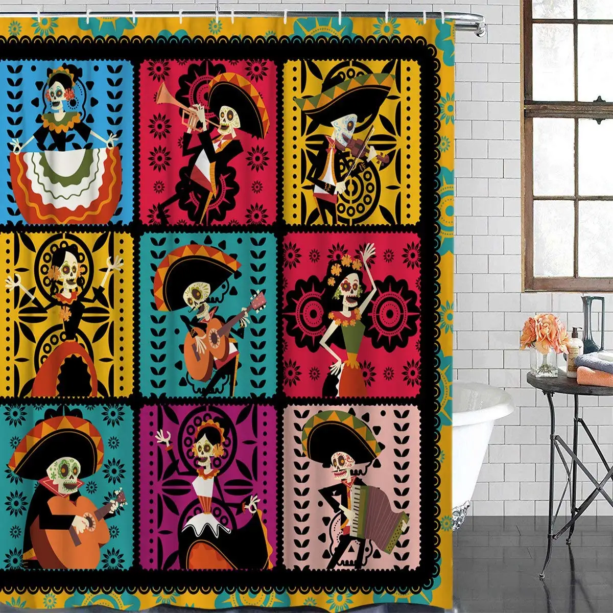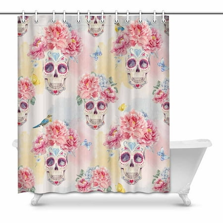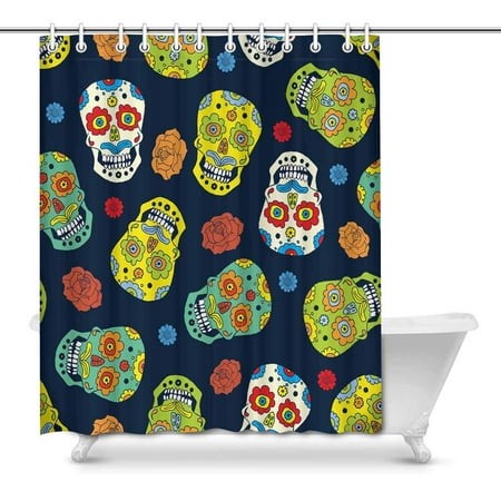 Fabric Shower Curtain Set Mexican Day Of The Dead Skull Bathroom