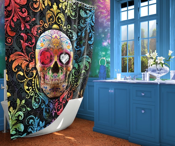 Skull Shower Curtain Day Of The Dead Shower Curtain Dia De Etsy