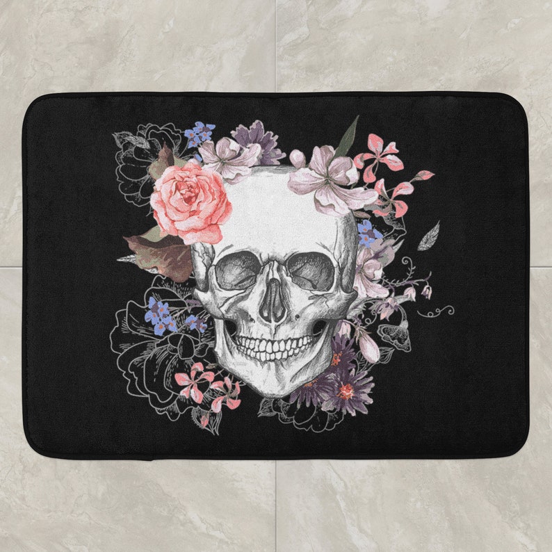 Skull Bath Mat Day Of The Dead Bathroom Rug Goth Bath Mats Etsy