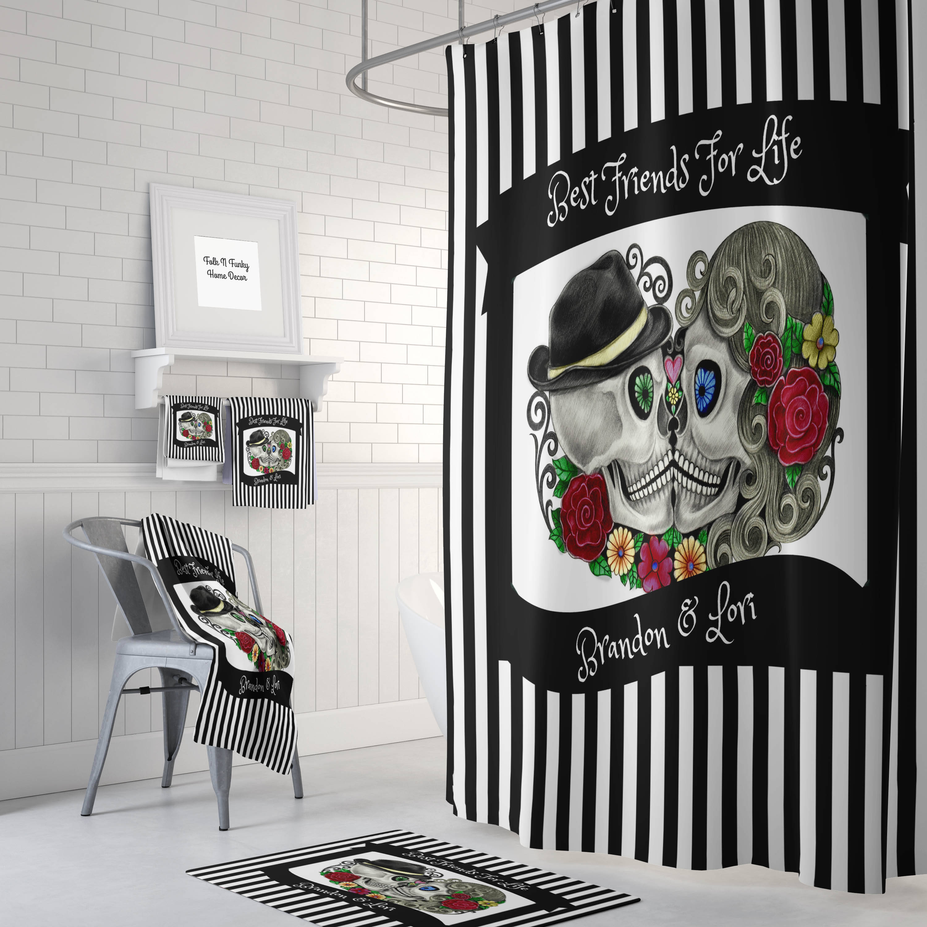 Dia de los muertos mariachi skeleton salt and pepper shaker set with decorative figurine holder for day of the dead mexican festival decor or halloween party kitchen table decorations as gothic gifts 46 out of 5 stars 70. Diy bathroom decor bathroom shower curtains diy home decor bathroom ideas bathroom stuff bath decor bath ideas bathroom designs master bathroom. Youre family members friends children son or daughter or anyone of your choosing will cherish these 4 prints forever.