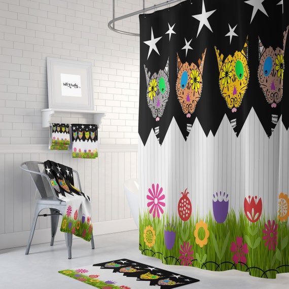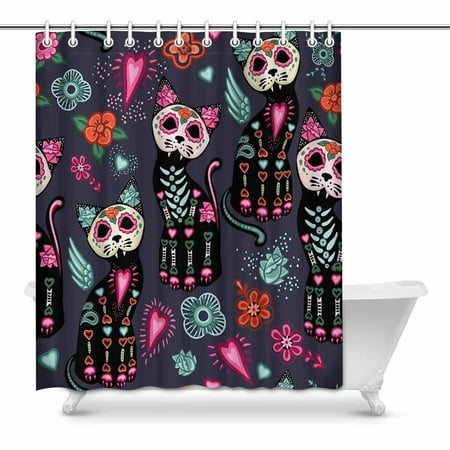 Sugar Skull Cat Shower Curtain Day Of The Dead Bathroom Etsy