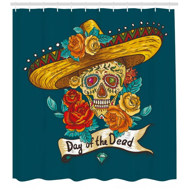 Day Of The Dead Decor Shower Curtain Mexican Festive Hat Skull