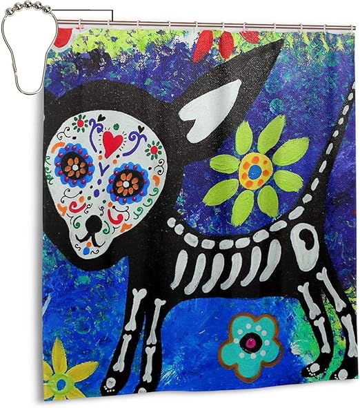Kaidi 2 Chihuahua Day Of The Dead Bathroom Curtain Set With Hooks