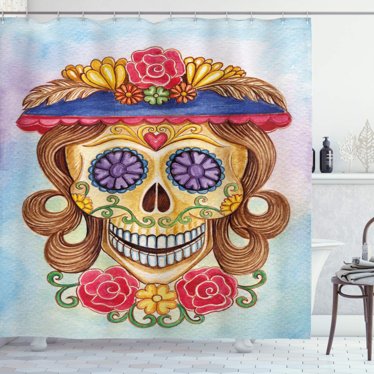 Amazon Com Ambesonne Day Of The Dead Shower Curtain Skull