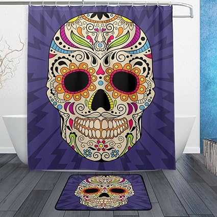 Shower Curtain Sugar Skull Day Of The Dead Bath Mat Bath