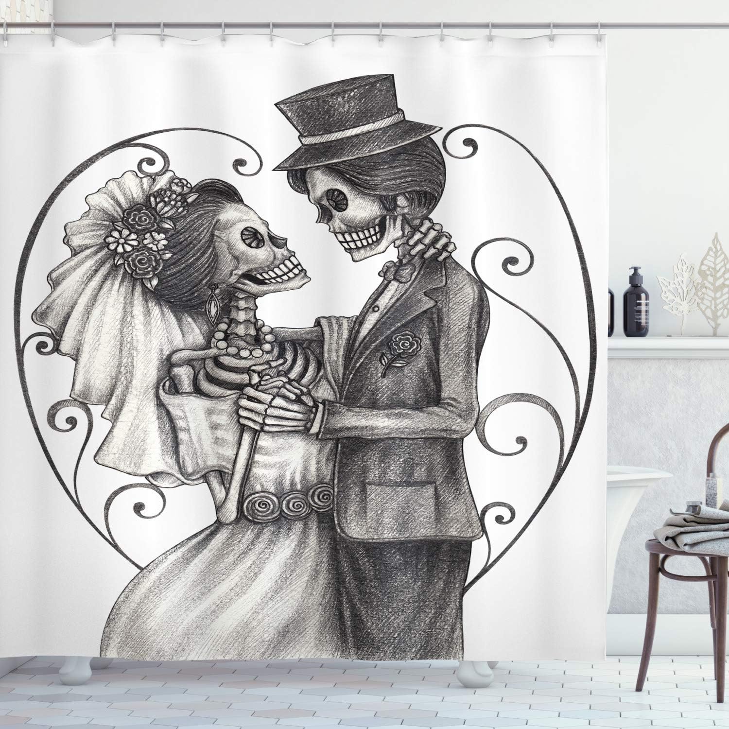Amazon Com Ambesonne Day Of The Dead Shower Curtain Mariage