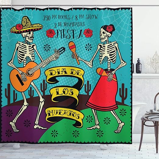 Amazon Com Ambesonne Day Of The Dead Shower Curtain Skeleton