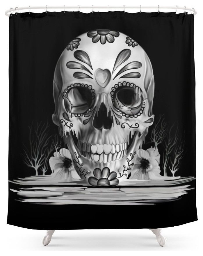 Sugar Skull Shower Curtain Day Of The Dead Decor Etsy